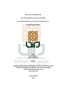 Reno Yulianda, NIM.: 23205031032 (2025) PUISI JALALUDDIN RUMI ATAS PENAFSIRAN AYAT-AYAT SUFISTIK QS. ADZ-DZARIYAT [51]: 22 DAN QS. AL-MULK [67]: 2 (ANALISIS HERMENEUTIKA). Masters thesis, UIN SUNAN KALIJAGA YOGYAKARTA.