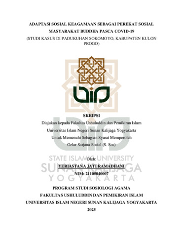 Yeriastana Jati Ramadhani, NIM.: 21105040007 (2025) ADAPTASI SOSIAL KEAGAMAAN SEBAGAI PEREKAT SOSIAL MASYARAKAT BUDDHA PASCA COVID-19 (STUDI KASUS DI PADUKUHAN SOKOMOYO, KABUPATEN KULON PROGO). Skripsi thesis, UIN SUNAN KALIJAGA YOGYAKARTA.