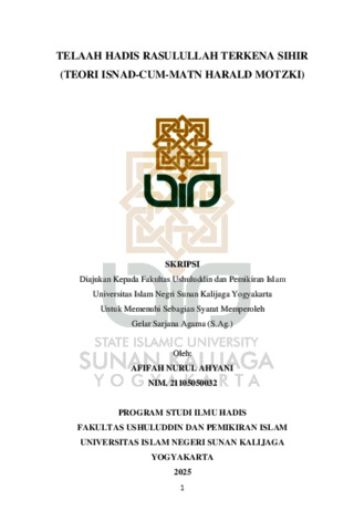 Afifah Nurul Ahyani, NIM.: 21105050032 (2025) TELAAH HADIS RASULULLAH TERKENA SIHIR (TEORI ISNAD-CUM-MATN HARALD MOTZKI). Skripsi thesis, UIN SUNAN KALIJAGA YOGYAKARTA.