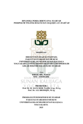 Isroji, SHI., M.Hum, NIM.: 19303012006 (2025) DINAMIKA PERDA BERNUANSA SYARI’AH PERSPEKTIF POLITIK HUKUM DAN MAQASID ASY-SYARI’AH. Doctoral thesis, UIN SUNAN KALIJAGA YOGYAKARTA.