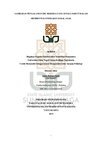 Irfan Rahmat Rafii, NIM.: 21107010057 (2025) GAMBARAN PENGALAMAN IBU BEKERJA YANG SINGLE PARENT DALAM MEMBENTUK INTERAKSI SOSIAL ANAK. Skripsi thesis, UIN SUNAN KALIJAGA YOGYAKARTA.
