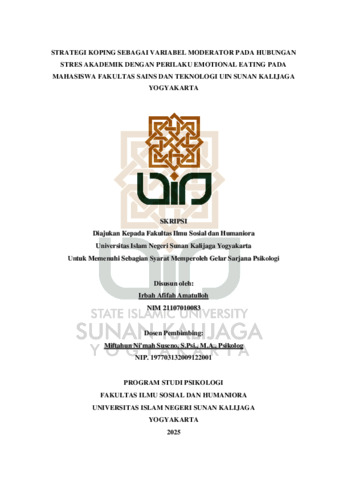 Text (STRATEGI KOPING SEBAGAI VARIABEL MODERATOR PADA HUBUNGAN STRES AKADEMIK DENGAN PERILAKU EMOTIONAL EATING PADA MAHASISWA FAKULTAS SAINS DAN TEKNOLOGI UIN SUNAN KALIJAGA YOGYAKARTA)