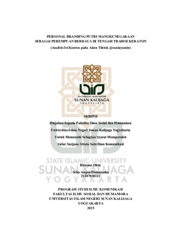 Seka Angon Damayasha, NIM.: 21107030113 (2025) PERSONAL BRANDING PUTRI MANGKUNEGARAAN SEBAGAI PEREMPUAN BERDAYA DI TENGAH TRADISI KERATON (ANALISIS ISI KONTEN PADA AKUN TIKTOK @raniayamin). Skripsi thesis, UIN SUNAN KALIJAGA YOGYAKARTA.