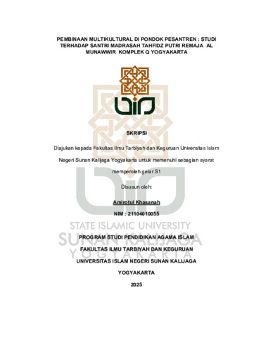Amirotul Khasanah, NIM.: 21104010055 (2025) PEMBINAAN MULTIKULTURAL DI PONDOK PESANTREN : STUDI TERHADAP SANTRI MADRASAH TAHFIDZ PUTRI REMAJA AL MUNAWWIR KOMPLEK Q YOGYAKARTA. Skripsi thesis, UIN SUNAN KALIJAGA YOGYAKARTA.
