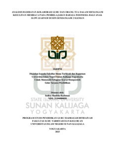 Text (ANALISIS HAMBATAN KOLABORASI GURU DAN ORANG TUA DALAM MENANGANI KESULITAN MEMBACA PADA PEMBELAJARAN BAHASA INDONESIA BAGI ANAK SLOW LEARNER DI SDN SENDANGADI 2 SLEMAN)