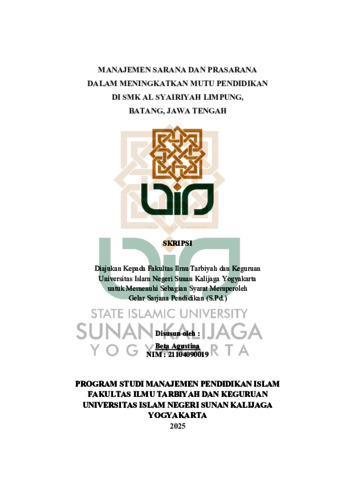 Beta Agustina, NIM.: 21104090019 (2025) MANAJEMEN SARANA DAN PRASARANA DALAM MENINGKATKAN MUTU PENDIDIKAN DI SMK AL SYAIRIYAH LIMPUNG, BATANG, JAWA TENGAH. Skripsi thesis, UIN SUNAN KALIJAGA YOGYAKARTA.