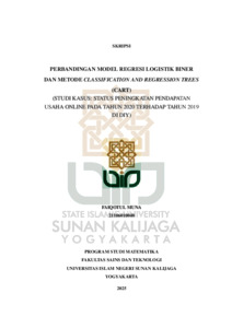 Faiqotul Muna, NIM.: 21106010040 (2025) PERBANDINGAN MODEL REGRESI LOGISTIK BINER DAN METODE CLASSIFICATION AND REGRESSION TREES (CART) (STUDI KASUS: STATUS PENINGKATAN PENDAPATAN USAHA ONLINE PADA TAHUN 2020 TERHADAP TAHUN 2019 DI DIY). Skripsi thesis, UIN SUNAN KALIJAGA YOGYAKARTA.
