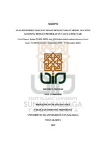 Khoirun Nikmah, NIM.: 21106010049 (2025) ANALISIS RISIKO SAHAM SYARIAH MENGGUNAKAN MODEL MACHINE LEARNING DENGAN PENDEKATAN VALUE AT RISK (VAR) (STUDI KASUS: SAHAM TLKM, BRIS, DAN ASII DALAM INDEKS SAHAM JAKARTA ISLAMIC INDEX 70 (JII70) PERIODE 1 SEPTEMBER 2020 - 31 DESEMBER 2023). Skripsi thesis, UIN SUNAN KALIJAGA YOGYAKARTA.