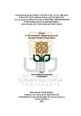 Text (ANALISIS KADAR VIRGIN COCONUT OIL (VCO), AIR, DAN PADATAN NON LEMAK PADA SANTAN KELAPA (Cocos nucifera) MENGGUNAKAN METODE SPEKTROSKOPI INFRAMERAH DAN KEMOMETRIKA MULTIVARIATE CURVE RESOLUTION (MCR))