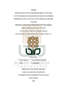 Text (OPTIMALISASI SETTING PARAMETER MESIN CNC PLASMA CUTTING TERHADAP AKURASI BENTUK DESAIN PADA PROSES PEMOTONGAN PLAT STAINLESS STEEL 430 DENGAN METODE TAGUCHI (STUDI KASUS: LABORATORIUM TEKNIK INDUSTRI UIN SUNAN KALIJAGA))