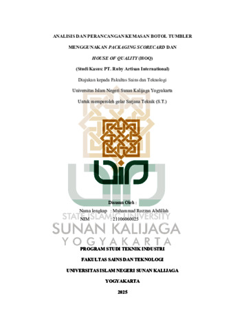 Muhammad Rozzan Abdillah, NIM.: 21106060025 (2025) ANALISIS DAN PERANCANGAN KEMASAN BOTOL TUMBLER MENGGUNAKAN PACKAGING SCORECARD DAN HOUSE OF QUALITY (HOQ) (STUDI KASUS: PT. RUBY ARTISAN INTERNATIONAL). Skripsi thesis, UIN SUNAN KALIJAGA YOGYAKARTA.