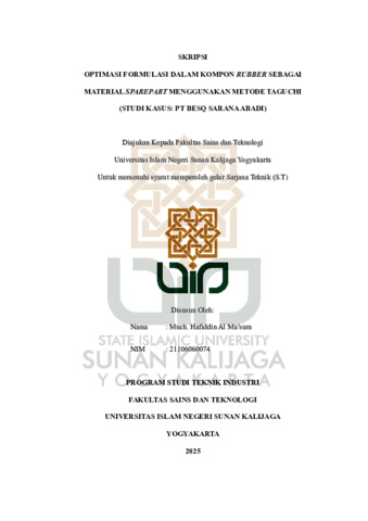 Text (OPTIMASI FORMULASI DALAM KOMPON RUBBER SEBAGAI MATERIAL SPAREPART MENGGUNAKAN METODE TAGUCHI (STUDI KASUS: PT BESQ SARANA ABADI))