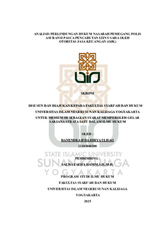 Danendra Ifda Dhiya Ulhaq, NIM.: 21103040100 (2025) ANALISIS PERLINDUNGAN HUKUM NASABAH PEMEGANG POLIS ASURANSI PASCA PENCABUTAN IZIN USAHA OLEH OTORITAS JASA KEUANGAN (OJK). Skripsi thesis, UIN SUNAN KALIJAGA YOGYAKARTA.