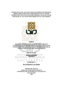 Qodar Sholihin, NIM.: 18103040133 (2025) PENERAPAN PAJAK ATAS TRANSAKSI ASET KRIPTO DI INDONESIA BERDASARKAN PERATURAN MENTERI KEUANGAN NOMOR 68/PMK.03/2022 TENTANG PAJAK PERTAMBAHAN NILAI DAN PAJAK PENGHASILAN ATAS TRANSAKSI PERDAGANGAN ASET KRIPTO. Skripsi thesis, UIN SUNAN KALIJAGA YOGYAKARTA.