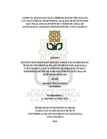 Ma’ruf Wicaksono, NIM.: 18103080010 (2025) JAMINAN KEAMANAN DATA PRIBADI KONSUMEN DALAM LAYANAN SERVIS SMARTPHONE ANALISIS HUKUM POSITIF DAN NILAI AMANAH MENURUT FIKIH MUAMALAH (STUDI KASUS ASOSIASI TEKNISI PONSEL YOGYAKARTA). Skripsi thesis, UIN SUNAN KALIJAGA YOGYAKARTA.