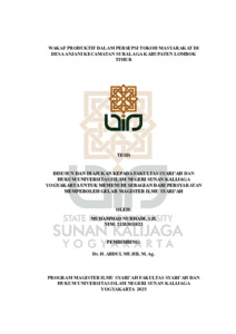 Muhammad Nurhadi, S.H, NIM.: 21203011023 (2025) WAKAF PRODUKTIF DALAM PERSEPSI TOKOH MASYARAKAT DI DESA ANJANI KECAMATAN SURALAGA KABUPATEN LOMBOK TIMUR. Masters thesis, UIN SUNAN KALIJAGA YOGYAKARTA.