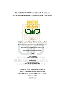 Wilis Prabowo, NIM.: 18102040080 (2025) MANAJEMEN WISATA KEAGAMAAN DI ASTANA MANGADEG KABUPATEN KARANGANYAR TAHUN 2024. Skripsi thesis, UIN SUNAN KALIJAGA YOGYAKARTA.