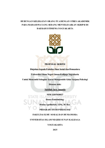 Text (HUBUNGAN KELEKATAN ORANG TUA DENGAN STRES AKADEMIK PADA MAHASISWA YANG SEDANG MENYELESAIKAN SKRIPSI DI DAERAH ISTIMEWA YOGYAKARTA)
