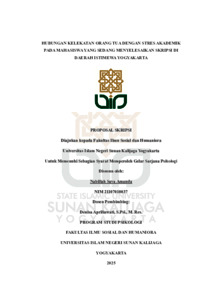 Nabillah Sava Amanda, NIM.: 21107010037 (2025) HUBUNGAN KELEKATAN ORANG TUA DENGAN STRES AKADEMIK PADA MAHASISWA YANG SEDANG MENYELESAIKAN SKRIPSI DI DAERAH ISTIMEWA YOGYAKARTA. Skripsi thesis, UIN SUNAN KALIJAGA YOGYAKARTA.