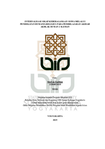 Text (INTERNALISASI SIKAP KEBERAGAMAAN SISWA MELALUI PENDEKATAN HUMANIS-RELIGIUS PADA PEMBELAJARAN AKIDAH AKHLAK DI MAN 2 SLEMAN)