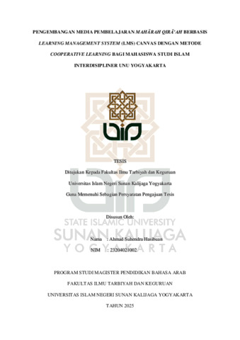 Text (PENGEMBANGAN MEDIA PEMBELAJARAN MAHĀRAH QIRĀ’AH BERBASIS LEARNING MANAGEMENT SYSTEM (LMS) CANVAS DENGAN METODE COOPERATIVE LEARNING BAGI MAHASISWA STUDI ISLAM INTERDISIPLINER UNU YOGYAKARTA)