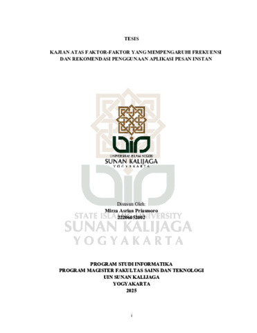 Mirza Asrian Priasmoro, NIM.: 22206052002 (2025) KAJIAN ATAS FAKTOR-FAKTOR YANG MEMPENGARUHI FREKUENSI DAN REKOMENDASI PENGGUNAAN APLIKASI PESAN INSTAN. Masters thesis, UIN SUNAN KALIJAGA YOGYAKARTA.