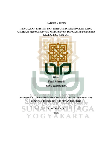 Fuad Achmadi, NIM.: 22206051006 (2025) PENGUJIAN EFISIEN DAN PERFORMA KECEPATAN PADA APLIKASI MICROSERVICE WEB SERVER DENGAN KUBERNETES k0s, k3s, k3d, DAN k8s. Masters thesis, UIN SUNAN KALIJAGA YOGYAKARTA.