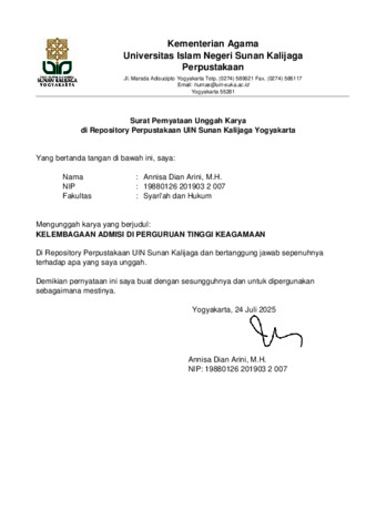 | Uncontrolled Keywords: | Lembaga Admisi, UIN Sunan Kalijaga, Perguruan Tinggi |
