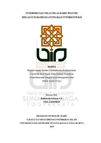 Deffananda Febrian S. P., NIM.: 21105050039 (2025) INTERPRETASI NILAI-NILAI HADIS POLITIK MELALUI PARADIGMA INTEGRASI INTERKONEKSI. Skripsi thesis, UIN SUNAN KALIJAGA YOGYAKARTA.