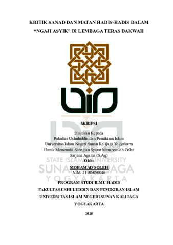 Text (KRITIK SANAD DAN MATAN HADIS-HADIS DALAM “NGAJI ASYIK” DI LEMBAGA TERAS DAKWAH)