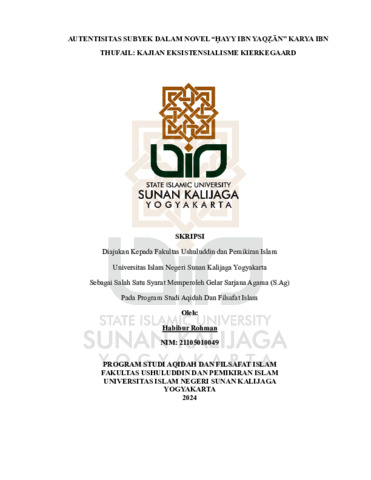 Habibur Rohman, NIM.: 21105010049 (2025) AUTENTISITAS SUBYEK DALAM NOVEL "HAYY IBN YAQZAN" KARYA IBN THUFAIL: KAJIAN EKSISTENSIALISME KIERKEGAARD. Skripsi thesis, UIN SUNAN KALIJAGA YOGYAKARTA.