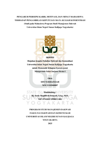 Text (PENGARUH PERSEPSI KARIR, MOTIVASI, DAN MINAT MAHASISWA TERHADAP PENGAMBILAN KEPUTUSAN MATA KULIAH KONSENTRASI (STUDI PADA MAHASISWA PROGRAM STUDI MANAJEMEN DAKWAH UNIVERSITAS ISLAM NEGERI SUNAN KALIJAGA YOGYAKARTA))