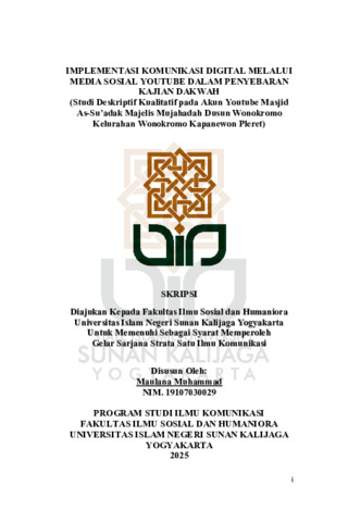 Maulana Muhammad, NIM.: 19107030029 (2025) IMPLEMENTASI KOMUNIKASI DIGITAL MELALUI MEDIA SOSIAL YOUTUBE DALAM PENYEBARAN KAJIAN DAKWAH (STUDI DESKRIPTIF KUALITATIF PADA AKUN YOUTUBE MASJID AS-SU’ADAK MAJELIS MUJAHADAH DUSUN WONOKROMO KELURAHAN WONOKROMO KAPANEWON PLERET). Skripsi thesis, UIN SUNAN KALIJAGA YOGYAKARTA.