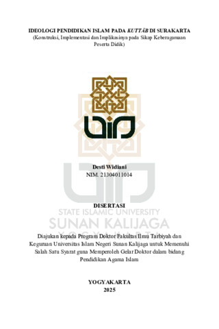 Desti Widiani, NIM.: 21304011014 (2025) IDEOLOGI PENDIDIKAN ISLAM PADA KUTTĀB DI SURAKARTA (KONSTRUKSI, IMPLEMENTASI DAN IMPLIKASINYA PADA SIKAP KEBERAGAMAAN PESERTA DIDIK). Doctoral thesis, UIN SUNAN KALIJAGA YOGYAKARTA.
