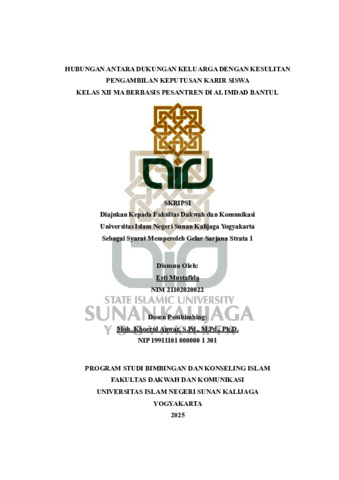 Text (HUBUNGAN ANTARA DUKUNGAN KELUARGA DENGAN KESULITAN PENGAMBILAN KEPUTUSAN KARIR SISWA KELAS XII MA BERBASIS PESANTREN DI AL IMDAD BANTUL)