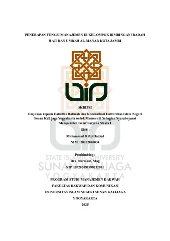 Muhammad Rifqi Haekal, NIM.: 20102040034 (2025) PENERAPAN FUNGSI MANAJEMEN DI KELOMPOK BIMBINGAN IBADAH HAJI DAN UMRAH AL-MANAR KOTA JAMBI. Skripsi thesis, UIN SUNAN KALIJAGA YOGYAKARTA.