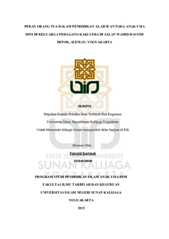 Text (PERAN ORANG TUA DALAM PENDIDIKAN AL-QUR’AN PADA ANAK USIA DINI DI KELUARGA PEDAGANG KAKI LIMA DI JALAN WAHID HASYIM DEPOK, SLEMAN, YOGYAKARTA)