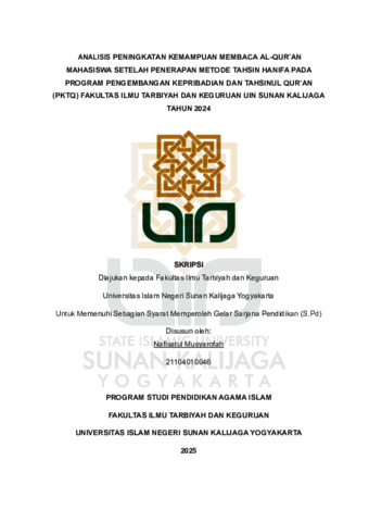 Text (ANALISIS PENINGKATAN KEMAMPUAN MEMBACA AL-QUR’AN MAHASISWA SETELAH PENERAPAN METODE TAHSIN HANIFA PADA PROGRAM PENGEMBANGAN KEPRIBADIAN DAN TAHSINUL QUR’AN (PKTQ) FAKULTAS ILMU TARBIYAH DAN KEGURUAN UIN SUNAN KALIJAGA TAHUN 2024)