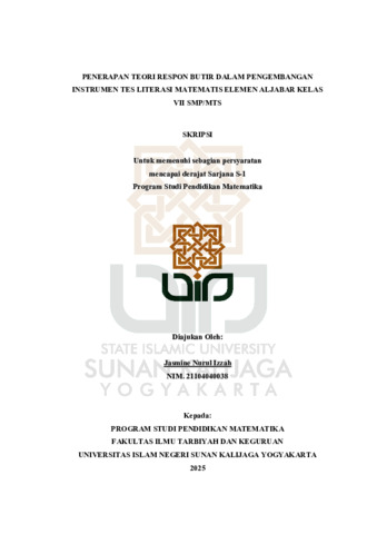 Text (PENERAPAN TEORI RESPON BUTIR DALAM PENGEMBANGAN INSTRUMEN TES LITERASI MATEMATIS ELEMEN ALJABAR KELAS VII SMP/MTS)