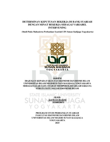 Alfiyan Hakim, NIM.: 18108020075 (2025) DETERMINAN KEPUTUSAN BEKERJA DI BANK SYARIAH DENGAN MINAT BEKERJA SEBAGAI VARIABEL INTERVENING (STUDI PADA MAHASISWA PERBANKAN SYARIAH UIN SUNAN KALIJAGA YOGYAKARTA). Skripsi thesis, UIN SUNAN KALIJAGA YOGYAKARTA.