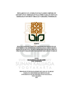 Muhammad Anwar Sadid, NIM.: 18108030030 (2025) PENGARUH TAX AVOIDANCE DAN GOOD CORPORATE GOVERNANCE TERHADAP NILAI PERUSAHAAN DENGAN KEBIJAKAN DIVIDEN SEBAGAI VARIABEL MODERASI. Skripsi thesis, UIN SUNAN KALIJAGA YOGYAKARTA.