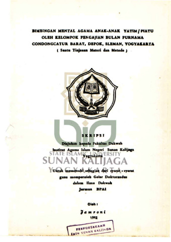Text (BIMBINGAN MENTAL AGAMA ANAK ANAK YATIM/PIATU OLEH KELOMPOK ENGAJIAN PURNAMA CONDI-ONCATUR BARAT, DEPOK,SLEMAN, YOGYAKARTA ( SUATU TINJAUAN MATERI DAN METODE ))