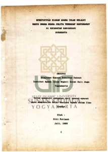 Penelitian ini bertujuan untuk mengetahui efektivitas siaran agama Islam yang disiarkan melalui Radio Swara Graha Jelita terhadap masyarakat di Kecamatan Banjarsari, Surakarta. Latar belakang penelitian didasarkan pada kenyataan bahwa radio masih menjadi media komunikasi yang efektif di kalangan masyarakat menengah ke bawah, termasuk sebagai sarana dakwah Islam. Permasalahan utama penelitian ini adalah sejauh mana siaran agama Islam melalui radio tersebut berpengaruh terhadap pemahaman dan pengamalan keagamaan masyarakat, khususnya dalam ibadah shalat, puasa, dan zakat. Penelitian menggunakan metode survei dengan instrumen angket, wawancara, observasi, dan dokumentasi. Populasi penelitian mencakup masyarakat muslim di Kecamatan Banjarsari, sedangkan sampel diambil secara stratifikasi dari tiga kelurahan, yaitu Kadipiro, Nusukan, dan Gilingan, dengan total responden sebanyak 90 orang. Data dianalisis secara deskriptif kuantitatif dengan distribusi frekuensi dan persentase. Hasil penelitian menunjukkan bahwa pada strata berpendidikan tinggi, siaran agama Islam dinilai cukup efektif, pada strata menengah efektivitasnya relatif lemah, sedangkan pada strata dasar dinilai cukup efektif. Secara umum, siaran agama Islam melalui Radio Swara Graha Jelita terbukti cukup efektif dalam meningkatkan pengetahuan dan pengamalan ibadah masyarakat, meskipun efektivitasnya bervariasi menurut tingkat pendidikan.