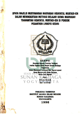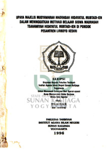 Text (UPAYA MAJELIS MUSYAWARAH MADRASAH HIDAYATUL MUBTADI-IEN DALAM MENINGKATKAN MOTIVASI BELAJAR SISWA MADRASAH TSANAWIYAH HIDAYATUL MUBTADI-IEN DI PONDOK PESANTREN LIRBOYO KEDIRI)