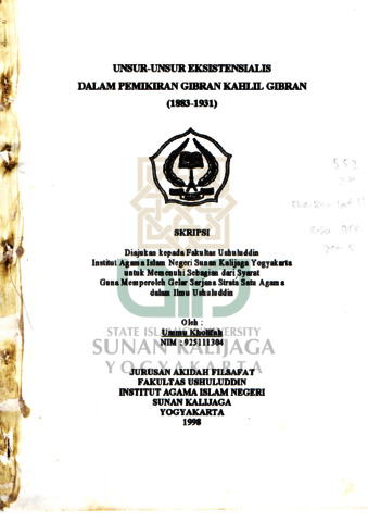 Ummu Kholifah, NIM.: 92511304 (1998) UNSUR-UNSUR EKSISTENSIALIS DALAM PEMIKIRAN GIBRAN KAHIL GIBRAN (1883–1931). Skripsi thesis, UIN SUNAN KALIJAGA YOGYAKARTA.