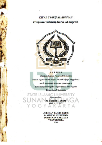 M. Khoirul Anam, NIM.: 95531935 (2000) KITAB SYARH AL-SUNNAH (TINJAUAN TERHADAP KARYA AL-BAGAWI). Skripsi thesis, UIN SUNAN KALIJAGA YOGYAKARTA.