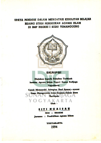Siti Ngaisah, NIM.: 88410546 (1994) UPAYA PENDIDIK DALAM MENGATASI KESULITAN BELAJAR BIDANG STUDI PENDIDIKAN AGAMA ISLAM DI SMP NEGERI I KEDU TEMANGGUNG. Skripsi thesis, UIN SUNAN KALIJAGA YOGYAKARTA.