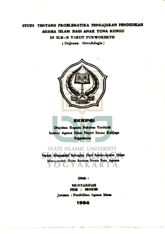 Text (STUDI TENTANG PROBLEHATIKA PENGAJARAN PENDIDIKAN AGAHA ISLAM BAGI ANAK TUNA RUNGU DI SLB-B YAKUT PURWOKERTO (SUATU TINJAUAN METODOLOGIS))