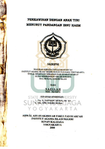 Nafilah, NIM.: 96352573 (2000) PERKAWINAN DENGAN ANAK TIRI MENURUT PANDANGAN IBNU HAZM. Skripsi thesis, UIN SUNAN KALIJAGA YOGYAKARTA.