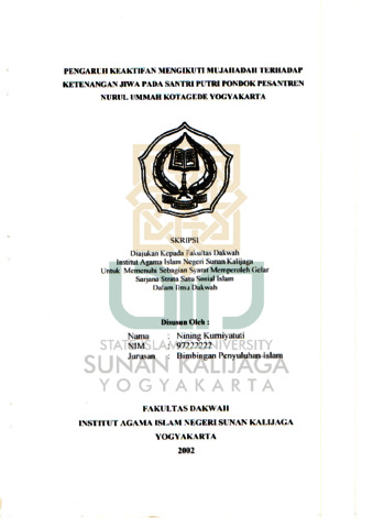 Text (PENGARUH KEAKTIFAN MENGIKUTI MUJAHADAH TERHADAP KETENANGAN JIWA PADA SANTRI PUTRI PONDOK PESANTREN NURUL UMMAH KOTAGEDE YOGYAKARTA)